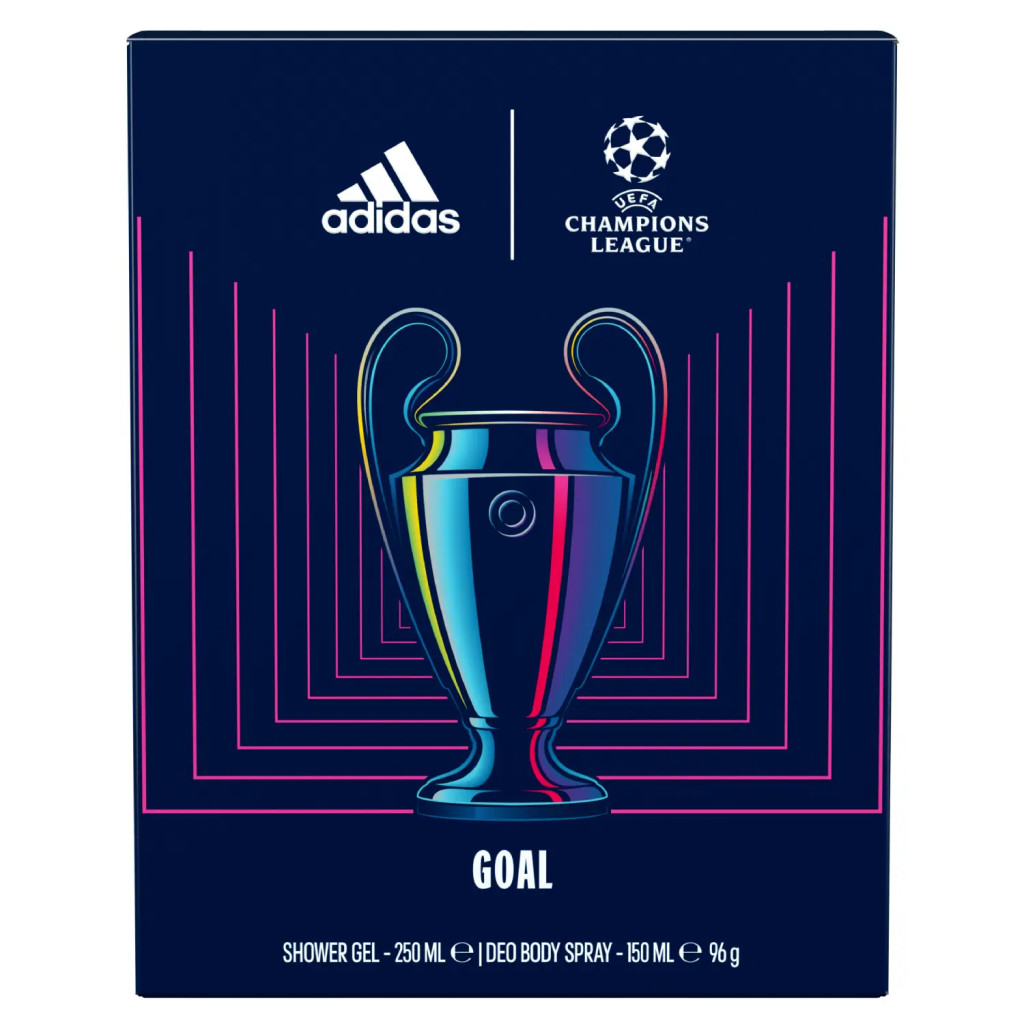 Fedezd fel a sportos energialöketet a férfias frissesség világában az Adidas UEFA Champions League Goal ajándékszettel! Ez a különleges szett olyan férfiaknak szól, akik nemcsak az aktív életstílust választják, hanem az illatukkal is kifejezik lendületüket és célratörőségüket. A csomagban egy 250 ml-es 3 az 1 tusfürdő (testnek, hajnak és arcnak) valamint egy 150 ml-es testpermet található, amelyek együttesen gondoskodnak az ápolt megjelenésről és az egész napos frissességről.