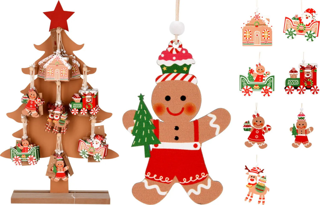 Dobd fel az ünnepi dekorációt ezekkel a vidám és színes akasztós karácsonyi díszekkel, amelyek garantáltan mosolyt csalnak mindenki arcára! A hétféle, kb. 7 x 7 cm-es dísz között megtalálható a mézeskalács figura, a Mikulás, a rénszarvas, a kisvonat, a karácsonyi házikó és még sok más kedves motívum, amelyek tökéletesen hozzák a meghitt, játékos ünnepi hangulatot.
