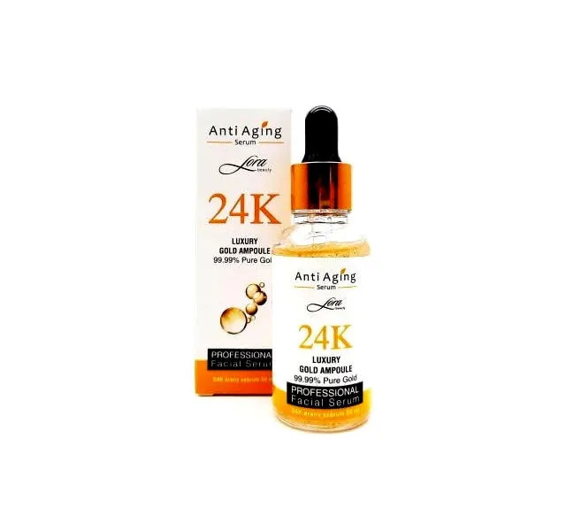 Kényeztesse bőrét a luxus erejével a 30 ml-es 24K arany arcszérummal, amely igazi különlegesség a bőrápolás világában. Ez az exkluzív szérum 99,99% tisztaságú aranyat tartalmaz, amely nemcsak eleganciát sugall, hanem aktívan hozzájárul a bőr fiatalos és ragyogó megjelenéséhez.