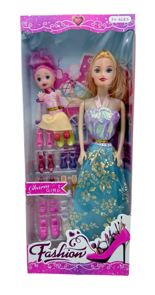Ez a baba játékszett tökéletes választás minden kis divatrajongó számára, aki szeret öltöztetni, tervezni és fantáziadús történeteket kitalálni. A készletben egy gyönyörű, 27 cm magas fő baba található, aki elegáns ruhájával és hosszú, selymes hajával rögtön elrabolja a gyerekek szívét. A dobozban egy kisebb baba is helyet kapott, így akár anya-lánya szerepjátékokra is alkalmas, vagy közös divatbemutatókat is rendezhetnek.