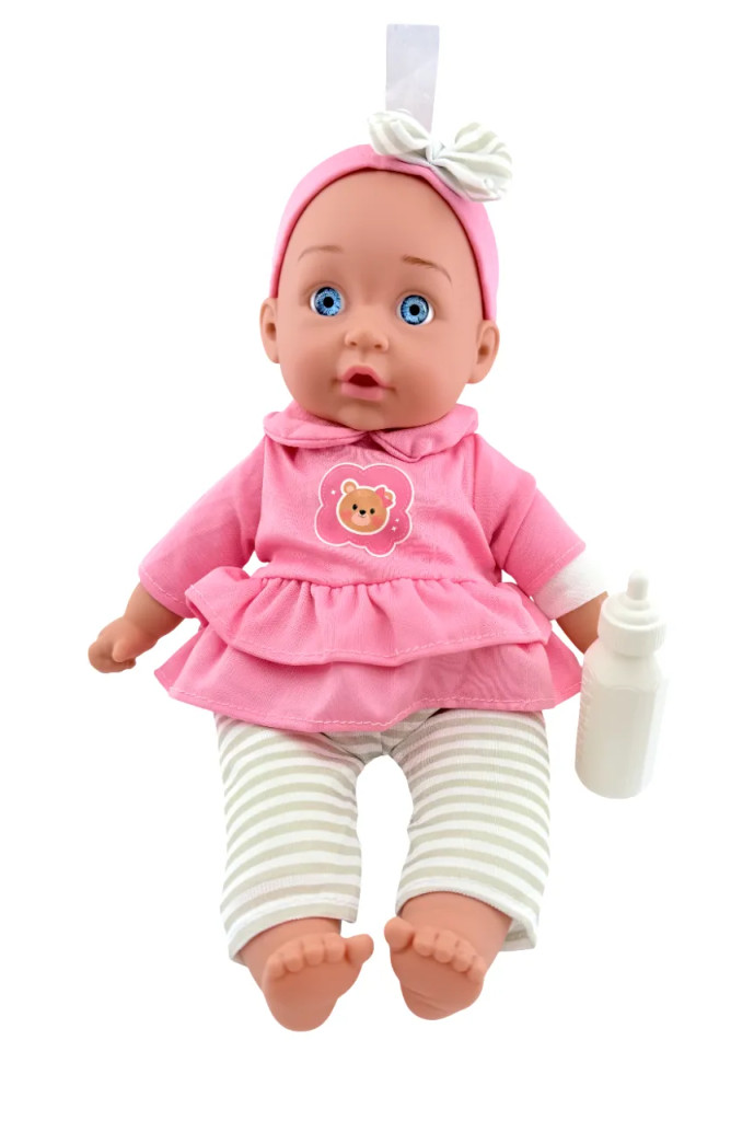 Ez a 15 x 30 cm-es aranyos játékbaba igazi kedvenc lesz minden kisgyermek számára, aki szeret babázni és gondoskodó szerepjátékokba belemerülni. Kedves arca, nagy, kék szemei és puha, kényelmes ruhája azonnal magával ragadja a gyerekeket, így könnyedén a mindennapi játék része lesz.