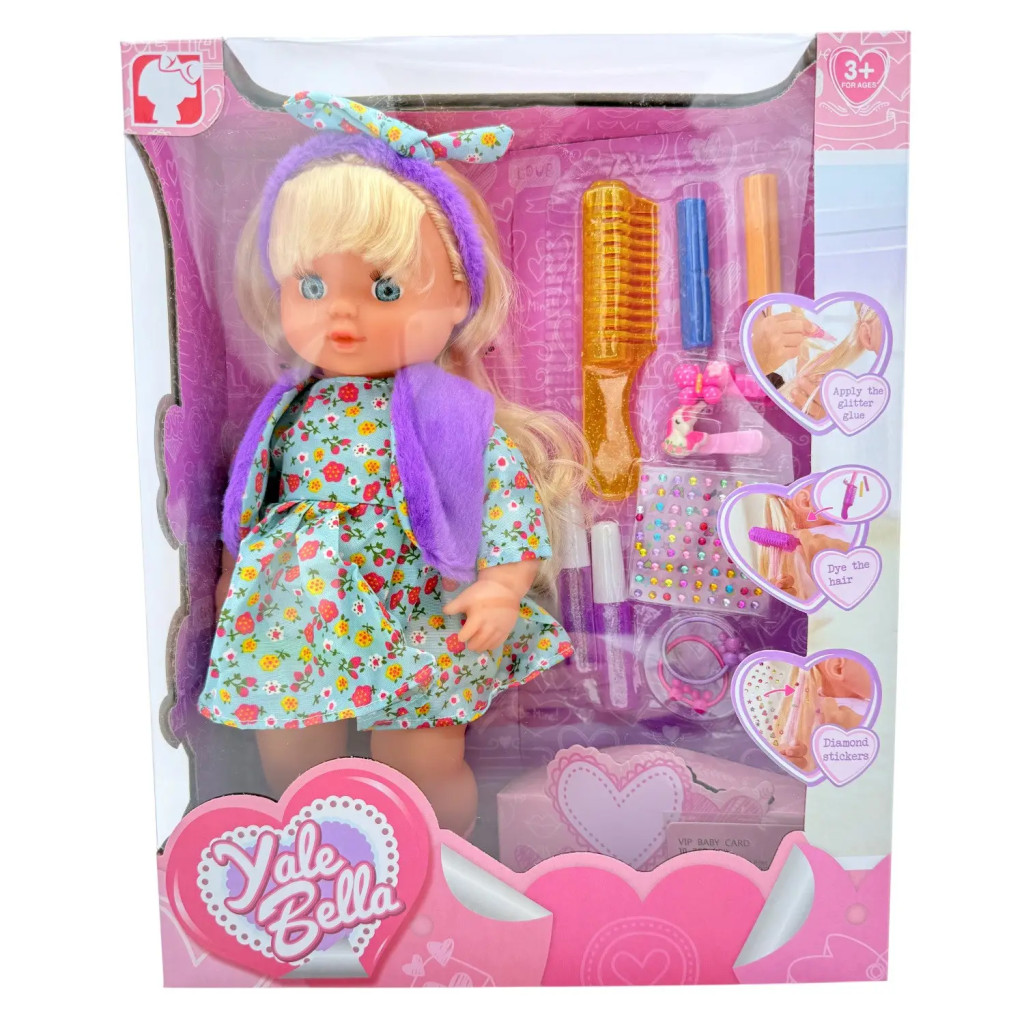 A kis divatrajongók álma válik valóra ezzel a 27 cm magas Yale Bella babával, aki mindig készen áll egy új frizura- vagy stílusváltásra. Ez a bájos baba aranyos, virágmintás ruhát visel, szőke haját pedig a gyerekek tetszésük szerint fésülhetik, díszíthetik és akár színezhetik is a mellékelt kiegészítők segítségével. A csomagban található hajformázó eszközök, csillámos díszek és színes hajtincsek gondoskodnak arról, hogy a játék mindig izgalmas és kreatív legyen.