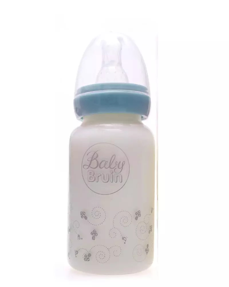 BabyBruin 120 ml-es, hőálló, boroszilikát üveg cumisüveg. 1-es méretű, szilikon tejes etetőcumit tartalmaz, amely 0-12 hónapos korig ajánlott. 600 fokig hőálló a cumisüveg, mely 150 fokos hőmérsékletkülömbségnek rezisztens.