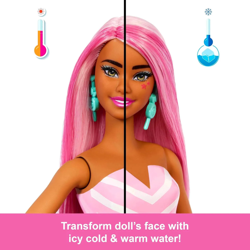 A készletben 8 különböző meglepetés vár, köztük egy mini kedvenc figura, divatos cipők, fülbevalók és ruhadarabok, amelyekkel a gyerekek saját stílusuk szerint öltöztethetik fel Barbie-t. A játék különlegessége a formázható, illatos slime, amely nemcsak szórakoztató, hanem kreatív játéklehetőséget is nyújt. Hideg és meleg víz segítségével a baba arca megváltozik, így a gyerekek egy extra meglepetést is felfedezhetnek.