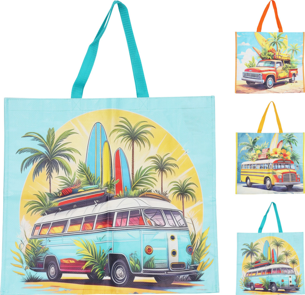 A strapabíró anyag biztosítja, hogy a táska jól bírja a terhelést, így hosszú távon is megbízható társad lehet. Erős fülei kényelmes hordozást tesznek lehetővé, akár kézben, akár vállon viselve is. Vidám, nyárias mintáinak köszönhetően nemcsak hasznos, hanem igazán mutatós kiegészítő is, amely feldobja a mindennapokat. Tökéletes választás bevásárláshoz, kiránduláshoz vagy akár egy laza hétvégi programhoz.