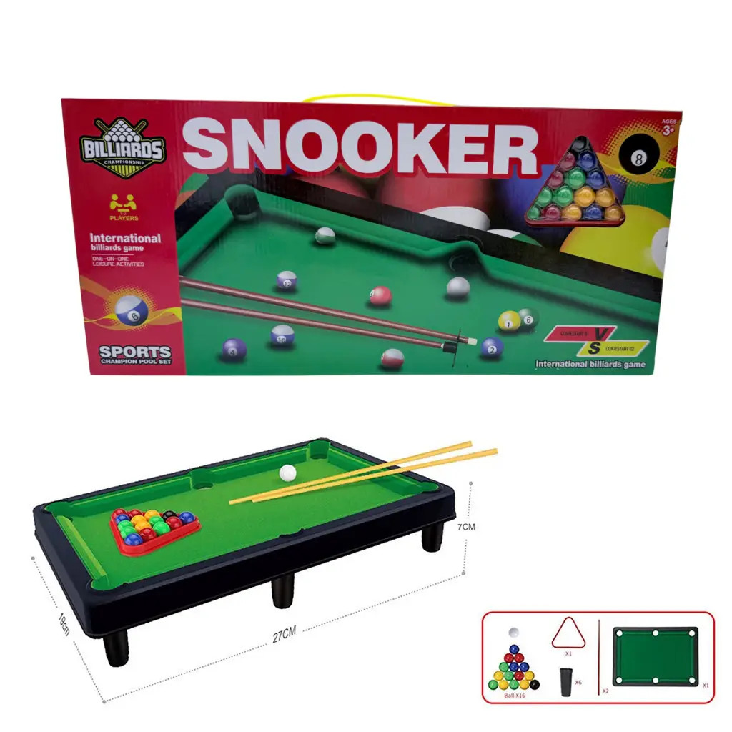 Ha szereted a biliárdot, de nincs helyed egy igazi asztalhoz, ez a mini snooker készlet tökéletes választás lesz számodra! A szett mindent tartalmaz, amire egy izgalmas kis házi bajnoksághoz szükséged lehet. A zöld posztóval borított mini asztal valósághűen idézi meg a klasszikus biliárd hangulatát, miközben kompakt mérete miatt bárhol könnyedén elfér – akár az asztalon, a padlón vagy a gyerekszobában.