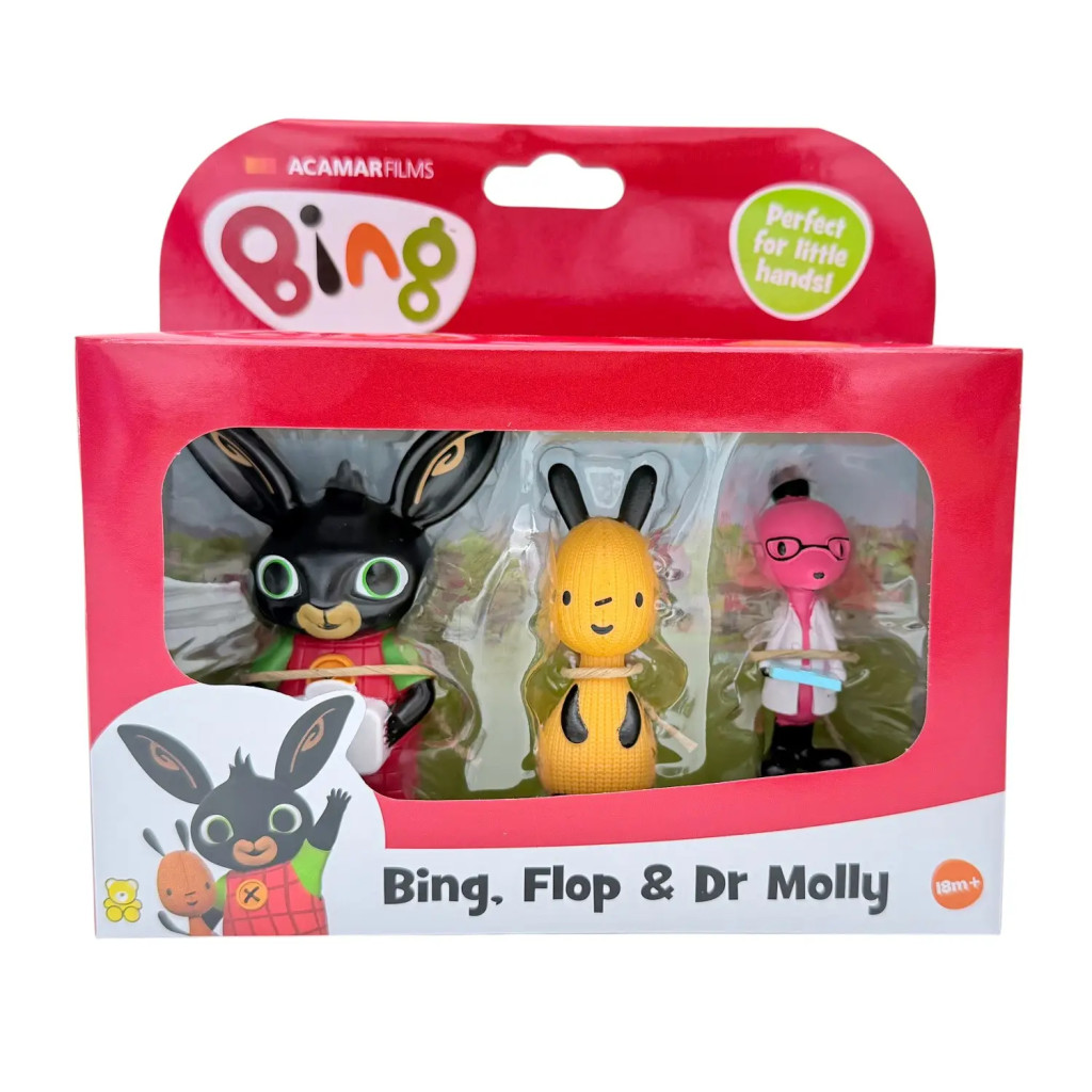 Bing és barátai most kézzel fogható formában is elhozzák a kedvenc meséid hangulatát! A Bing, Flop és Dr. Molly figura szett tökéletes választás minden kisgyermek számára, aki imádja a Bing mesét és szeretné újrajátszani a történetek legkedvesebb pillanatait. A három karakter – Bing, a kíváncsi és vidám kis nyuszi, Flop, a gondoskodó barátja, és Dr. Molly, a kedves orvos – most együtt érkeznek, hogy a gyerekek fantáziáját megmozgatva új kalandokra hívják őket.