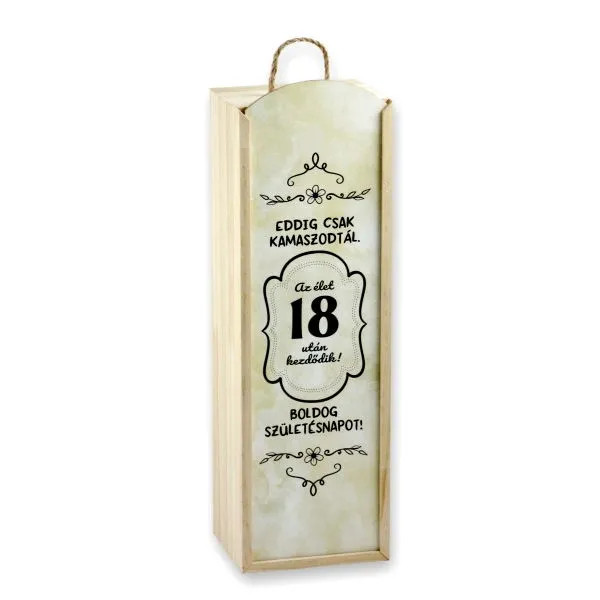 Boldog 18. Születésnapot feliratos Bortartó, fa, 23436