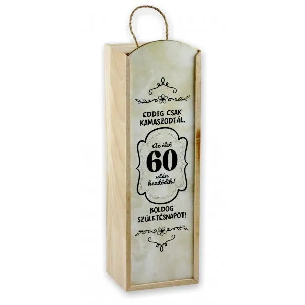 Kiváló minőségű, strapabíró fa anyaga miatt hosszú ideig megőrzi szépségét, így nemcsak ajándékként, hanem emlékként is megállja a helyét. Egy üveg jó borral kiegészítve garantáltan emlékezetessé teszi a 60. születésnapot, hiszen az élet ízei csak most kezdenek igazán kiteljesedni.