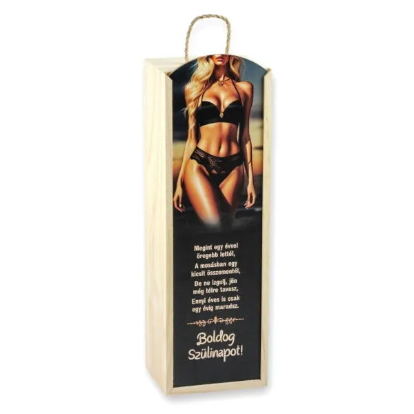 Boldog Születésnapot feliratos, csajos Bortartó, fa, 23479