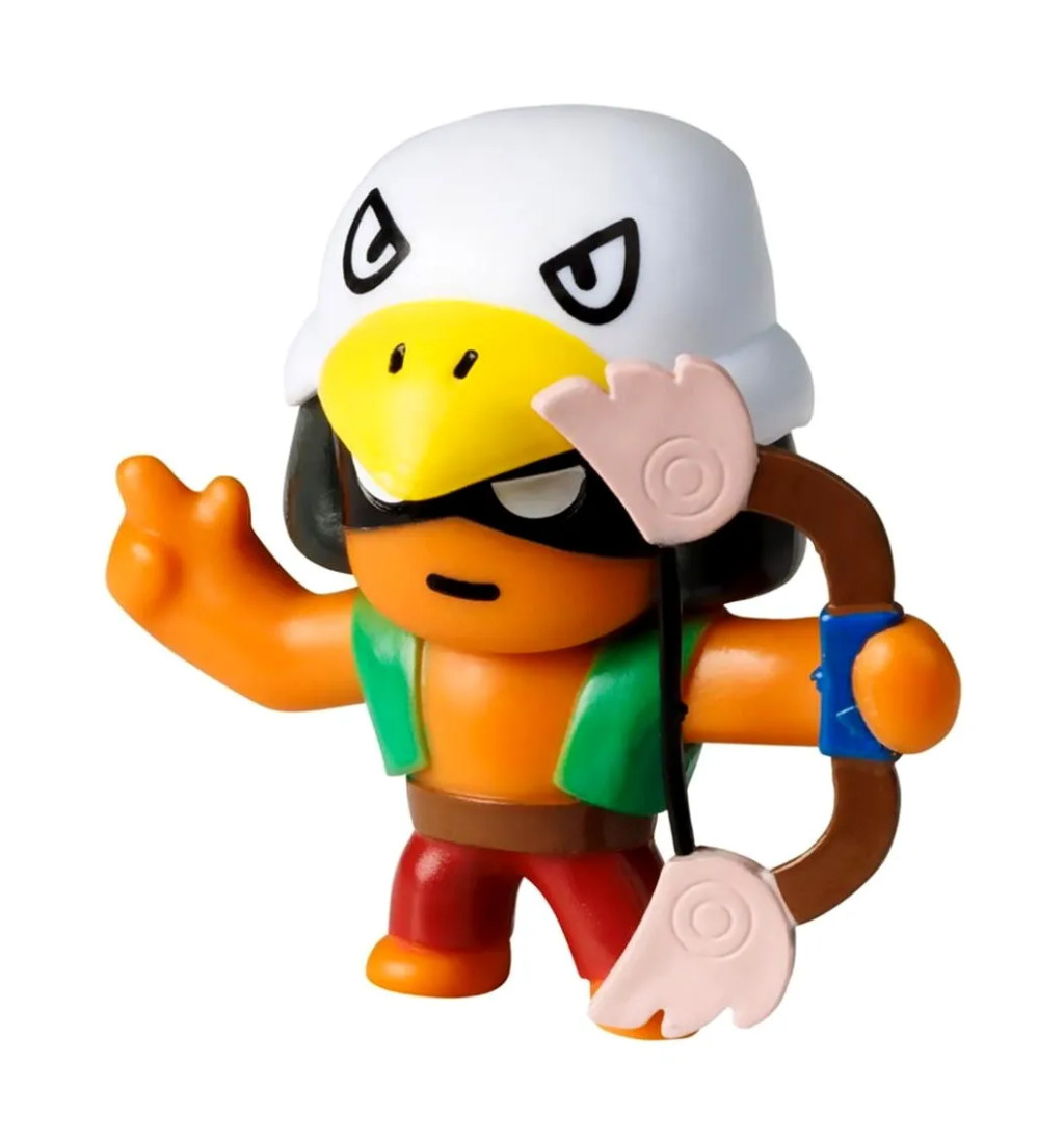 A Brawl Stars meglepetés mini akciófigurák tasakokban őket találhatod: Colt, Spike, Amber, Piper, Bo, Frank, Penny, Meg, Shelly, Rosa, Tara, Leon, Jessi, Mr. P, Crow, Bibi, Sandy, Nita. A figurák 4-4,5 cm magasak.
