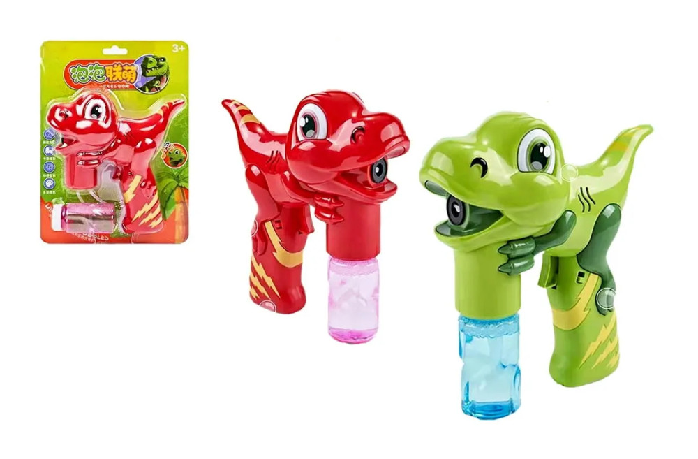 Ez a buborékfújó pisztoly egy kis dinoszaurusz formáját ölti magára melynek aljába tudod betölteni a buborékfújós üveget amit a szett tartalmaz.