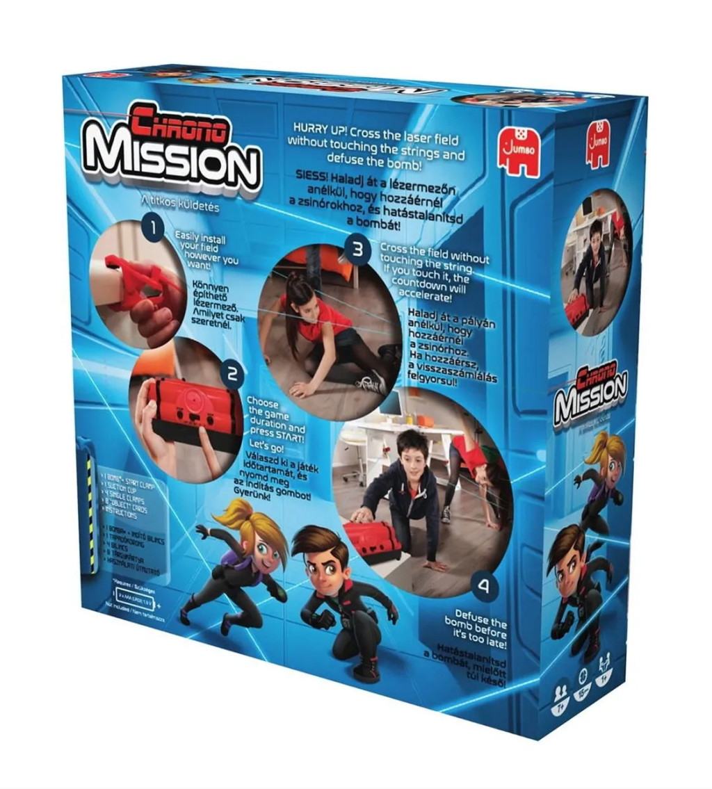 Új megbízásotok érkezett: kezdődhet a Chorno Mission, a titkos küldetés! Készen állsz a bevetésre? Ebben az akciódús társasjátékban lézersugarak között manőverezve kell hatástalanítanotok a bombát. Építsetek egyedi lézermezőt a szobában a fonalak és a rögzítők segítségével, és vágjatok neki a kihívásnak! A bombát tetszés szerint időzíthetitek.