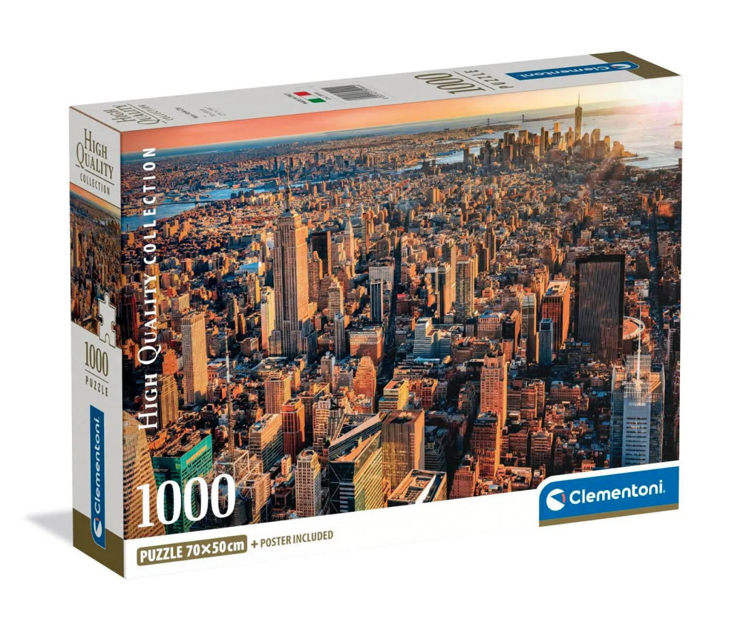 Ha imádod a nagyvárosi hangulatot és a kihívást jelentő kirakókat, a Clementoni 1000 darabos HQC New York épületei puzzle pont neked való! A lenyűgöző kép a világ egyik legismertebb városát mutatja meg fentről, ahol a naplemente aranyszínben ragyogtatja meg a felhőkarcolókat, köztük az ikonikus Empire State Buildinget. Ahogy rakosgatod a darabokat, lassan kibontakozik előtted Manhattan vibráló látképe, tele élettel és részletekkel, amik teljesen magukkal ragadnak.