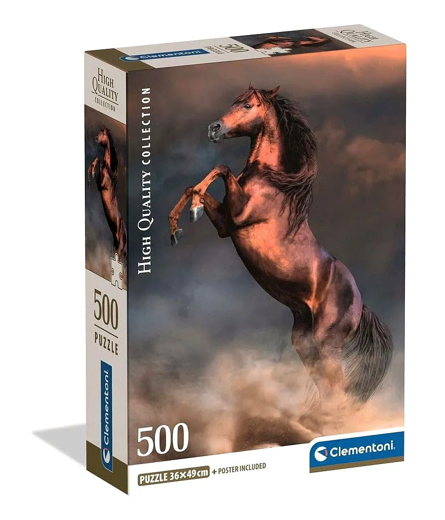 A Clementoni HQC sorozat magas minőségű, pontosan vágott puzzle darabokat kínál, amelyek könnyen illeszkednek és élménnyé teszik a kirakást. Az 500 darab ideális kihívás azoknak, akik szeretik a koncentrációt igénylő, de nem túl hosszadalmas kirakózást. A kép kontrasztos színei és a porfelhőből előtörő ló részletgazdag megjelenítése segít a könnyebb kirakásban, miközben megőrzi a játék izgalmát.