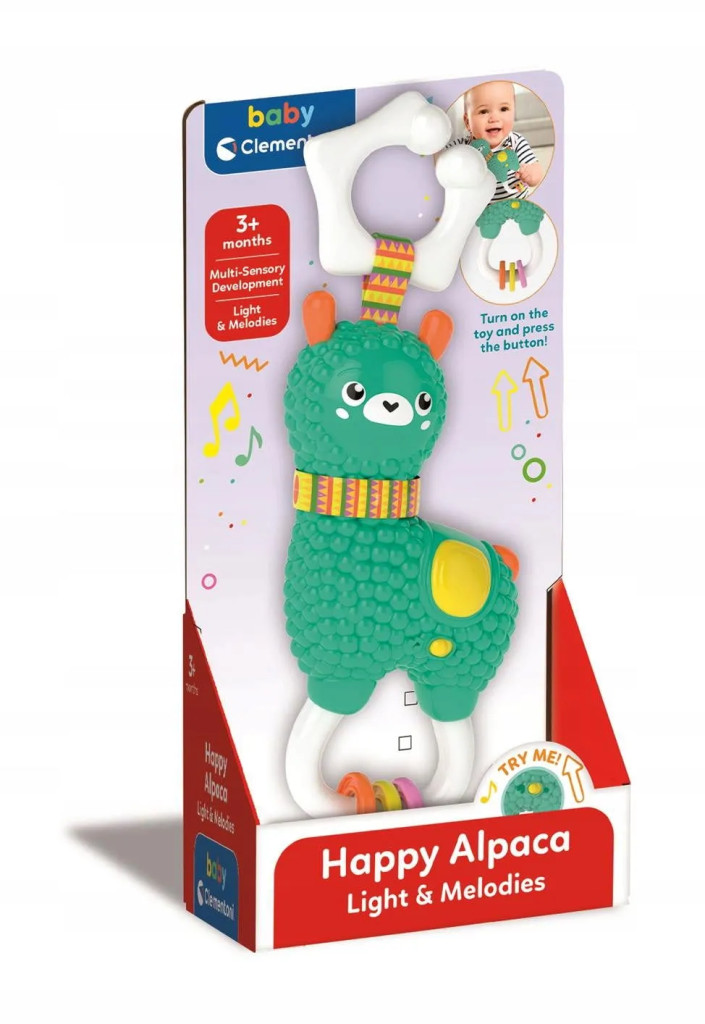 Ha egy vidám, figyelemfelkeltő játékot keresel a legkisebbeknek, a Clementoni Baby interaktív alpaka csörgő tökéletes választás! Ez az aranyos, színes kis alpaka már 3 hónapos kortól használható, így ideális első játéknak is. A 9 x 19 cm-es mérete pont kézre áll a babáknak, a könnyen fogható kialakítás pedig segít a kézügyesség és a motoros készségek fejlesztésében.
