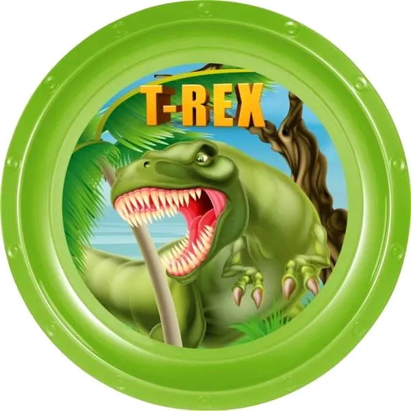 Ebben a 21 cm-es dinoszauruszos lapostányérban minden falat igazi őskori élménnyé válik. A tányér közepén egy félelmetesen vagány T-Rex köszönti a kis étkezőket, aki garantáltan jó étvágyat csinál még a legválogatósabb gyerekeknek is.