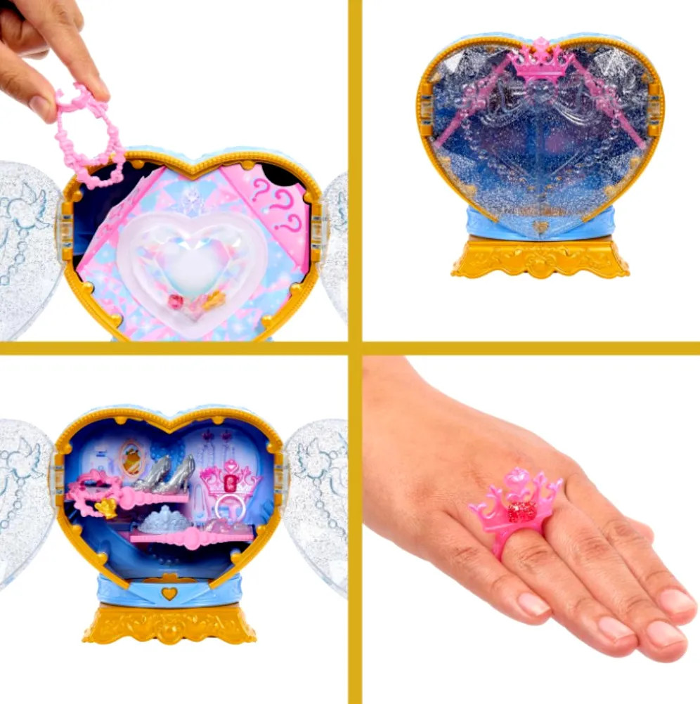 A Disney Hercegnők Csupaszív Meglepetés Baba játékszett Hamupipőkével igazi varázslatos élményt kínál minden kis hercegnőnek, hiszen már a kibontás pillanatától kezdve tele van izgalommal, csillogással és meglepetésekkel. A szív alakú, elegáns tároló nemcsak különleges megjelenésű, hanem praktikus is, hiszen a játék végén tökéletes helyet biztosít a kiegészítőknek és apró kincseknek, így a rendrakás is könnyedén mesévé válik.