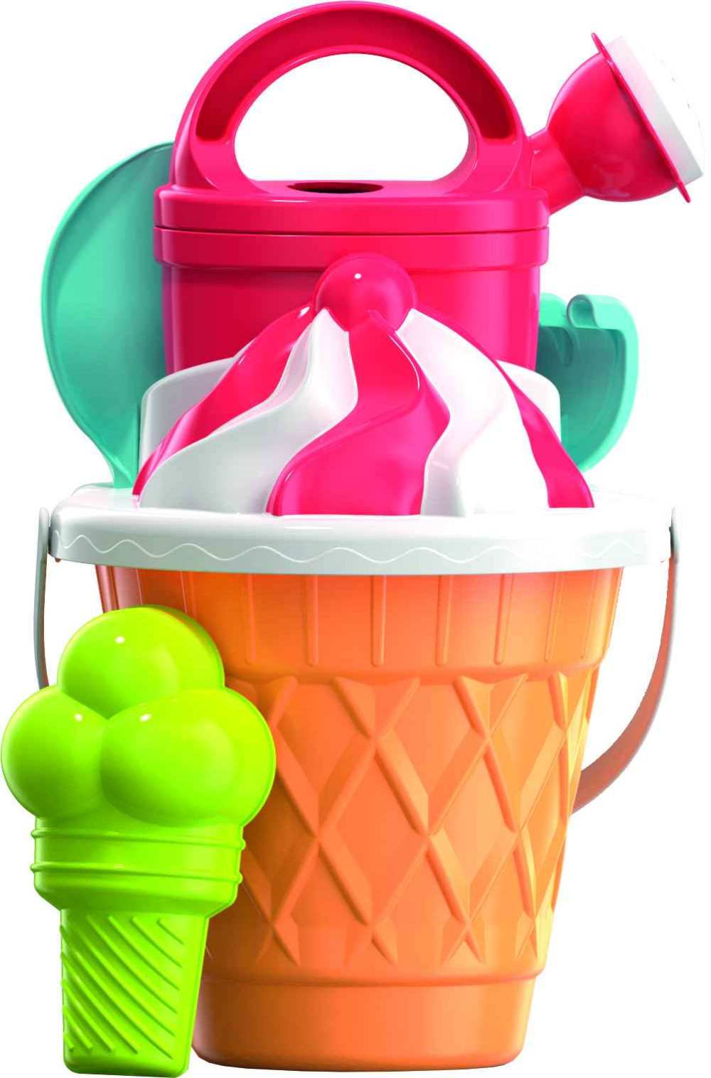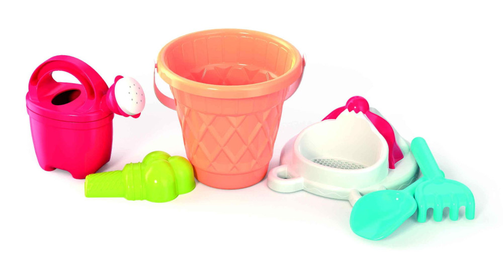 Fedezze fel a nyári szórakozás új dimenzióit a fagyis homokozó játékszettel, mely egyedi fagylalt formájú vödörben érkezik! Ez a színes és kreatív szett tartalmaz minden szükséges eszközt a homokozóban való játékhoz: egy praktikus locsolót, amivel a gyerekek frissíthetik a homokot, egy homok szitálót a tökéletes homokvárakért, egy lapátot és gereblyét az aprólékos részletek kialakításához, valamint egy fagyis homokozó formát, hogy gyermekének saját homokból készült fagylaltjai legyenek.