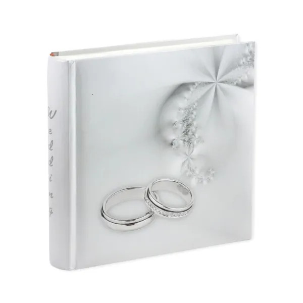 A 23 x 22 cm-es album letisztult, romantikus megjelenésével igazán különleges darab, amely már első pillantásra is az ünnepi hangulatot idézi. A borítón látható gyűrűmotívum és finom, világos árnyalatok időtálló eleganciát sugallnak, így az album évek múltán is stílusos része marad az otthoni emlékeknek.