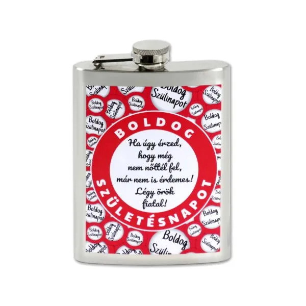 Ez a 240 ml-es, rozsdamentes acélból készült Boldog Születésnapot feliratos flaska tökéletes ajándék azoknak, akik szeretnek jókedvvel ünnepelni. A vidám dizájn és a frappáns üzenet garantáltan feldobja az ünnep hangulatát, és mosolyt csal mindenki arcára.