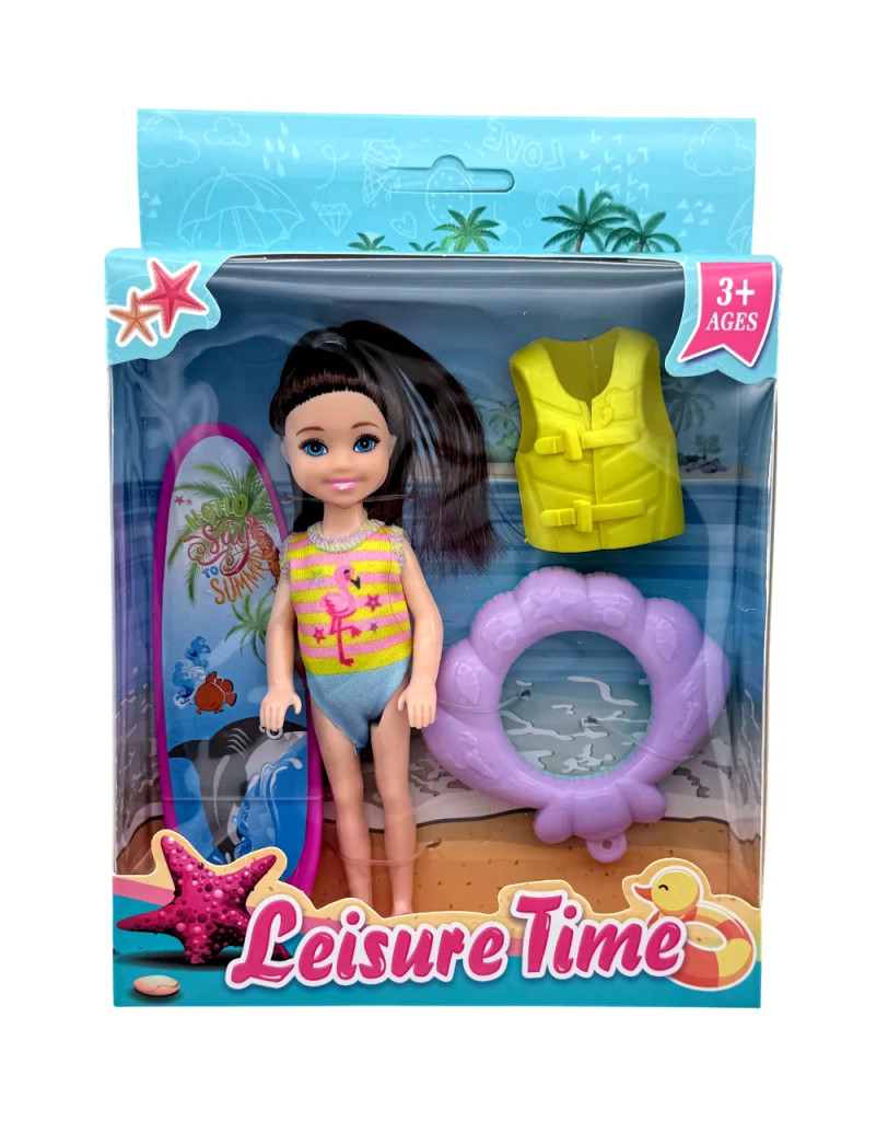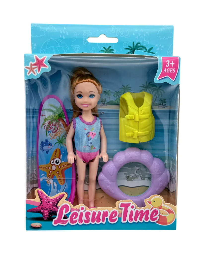 Ez a vidám Leisure Time fürdőző baba játékszett igazi nyári hangulatot varázsol a gyerekszobába! A csomagban található csinos baba készen áll egy izgalmas napra a vízparton, legyen szó úszásról, napozásról vagy vidám pancsolásról. A szettben úszógumi, mentőmellény és szörfdeszka is helyet kapott, így a játék még élethűbb és szórakoztatóbb lesz.