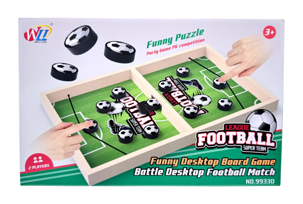 A szett két játékos számára készült, így remek választás testvéreknek, barátoknak vagy akár szülő gyerek közös játékhoz is. A masszív fa keret stabil játékélményt biztosít, a focilabda mintájú korongok pedig még hangulatosabbá teszik a mérkőzést. Könnyű megtanulni, gyorsan játszható és minden korosztály számára vidám szórakozást nyújt.
