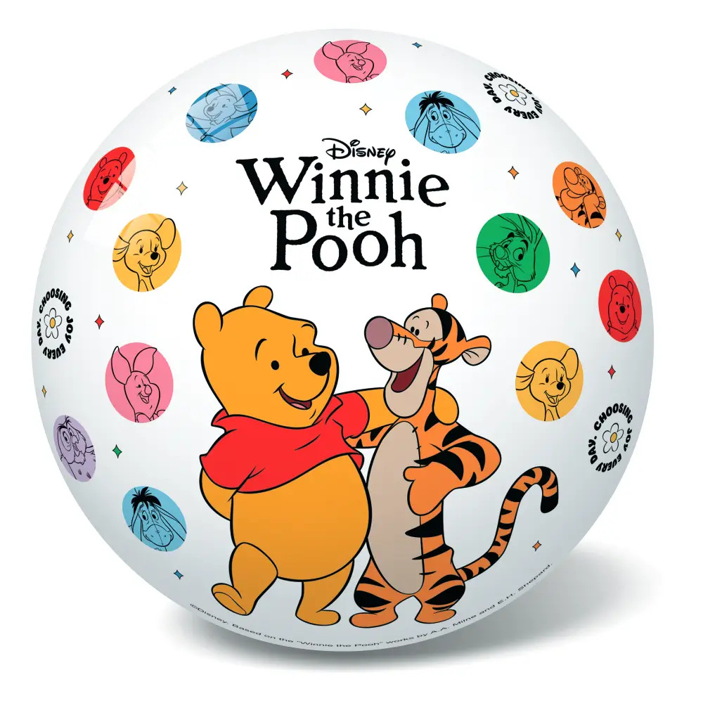 Vidám játék vár minden kisgyermekre ezzel a 23 cm-es Disney Micimackó gumilabdával! A labdán Micimackó és barátai – Tigris, Malacka és Füles – jelennek meg mosolygós, barátságos grafikákkal, amelyek igazi jókedvet visznek minden játékba.