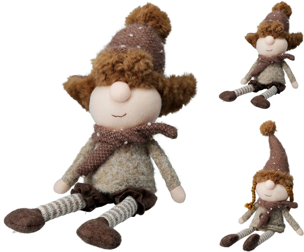 Vidd haza az ünnepi varázst ezzel a 15 x 48 cm-es ülő gyerek figurával, amely két különböző aranyos változatban érhető el. A puha anyagokból készült, kedves kis figura meleg kötött sapkával, sállal és részletgazdag öltözettel igazán meghitt hangulatot teremt a lakás bármely pontján.