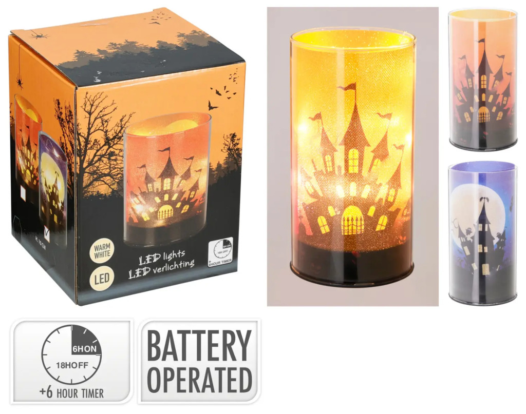 Teremts igazán varázslatos hangulatot otthonodban ezzel a LED-es halloweeni lámpással, amely a borzongató esték tökéletes kiegészítője. A henger alakú lámpás áttetsző falán kísérteties kastély és sejtelmes motívumok jelennek meg, amelyek a meleg fehér fényben életre kelnek. Ahogy besötétedik, a lámpás lágy fénye misztikus atmoszférát teremt, és igazi halloweeni hangulatot varázsol a nappaliba, előszobába vagy akár a teraszra is.