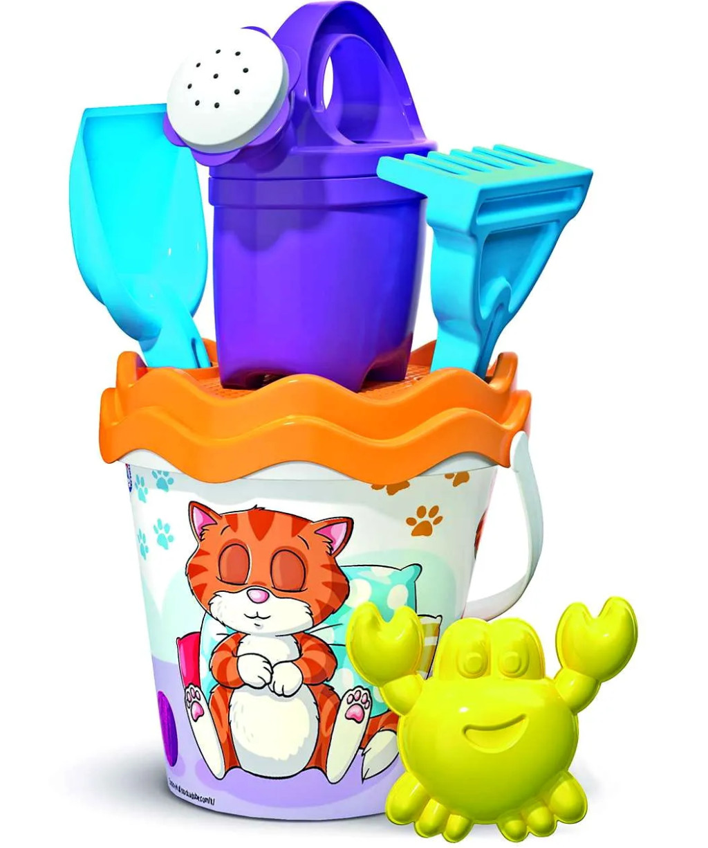 Indulhat a vidám homokozás ezzel a cicás játékszettel! Ez a színes és aranyos készlet minden kisgyermek kedvence lehet, aki szereti a kreatív játékokat a strandon vagy a homokozóban. A szett tartalmaz egy strapabíró vödröt, amelyet egy bájos, pihenő cica díszít, valamint egy locsolókannát, egy lapátot, egy gereblyét és egy cuki tengeri állatos figurát a homokfigurák készítéséhez (a figura formája készlet szerint változhat).