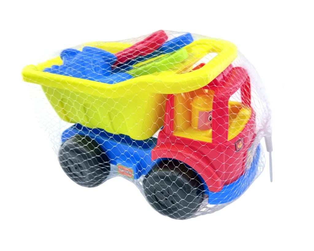 Homokozó játékszett dömperrel hálóban