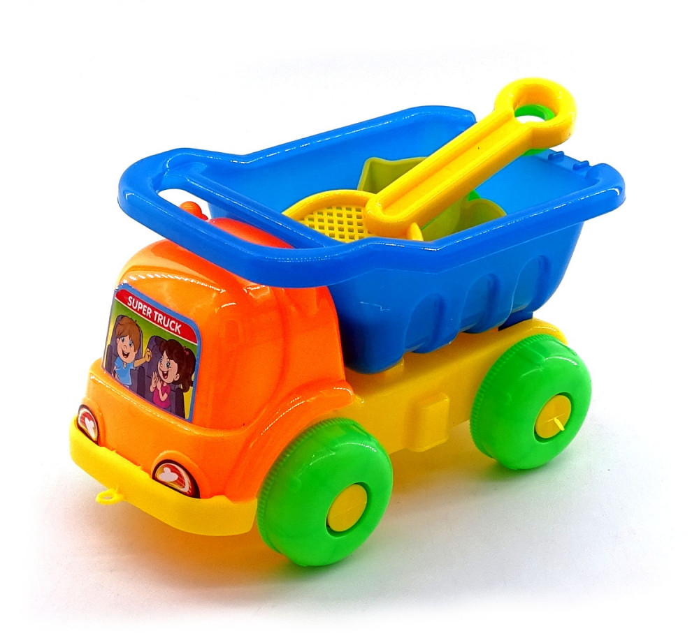 Ez a fantasztikus dömper most különleges rakományt hordoz, ugyanis a platóján egy komplett homokozó felszerelés szettet találsz, melynek remek hasznát veheted a kertben. Kis kompakt kialakítás és dönthető plató gondoskodik róla, hogy rakományod mindig a megfelelő helyen lehessen ennek a minőségi dömpernek köszönhetően.