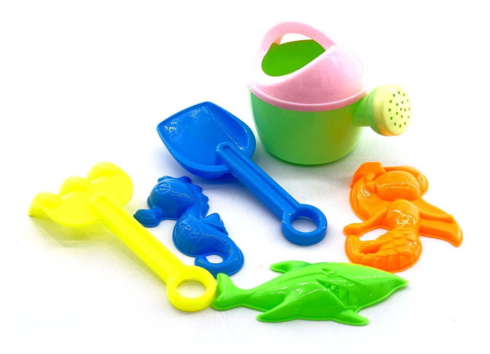 A szett tartalma: 1 db locsoló, 1 db gereblye, 1 db lapát és 3 db homokozó forma.