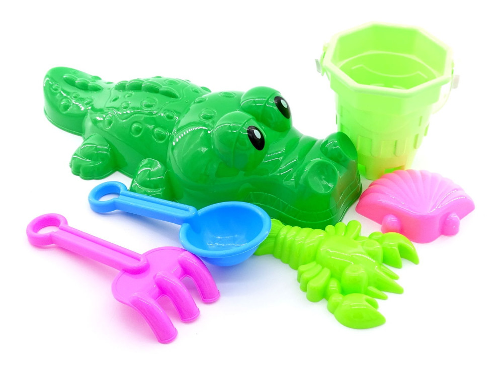 A szett tartalma: 1 db vödör, 1 db kanál, 3 db homokozó forma és 1 db gereblye.
