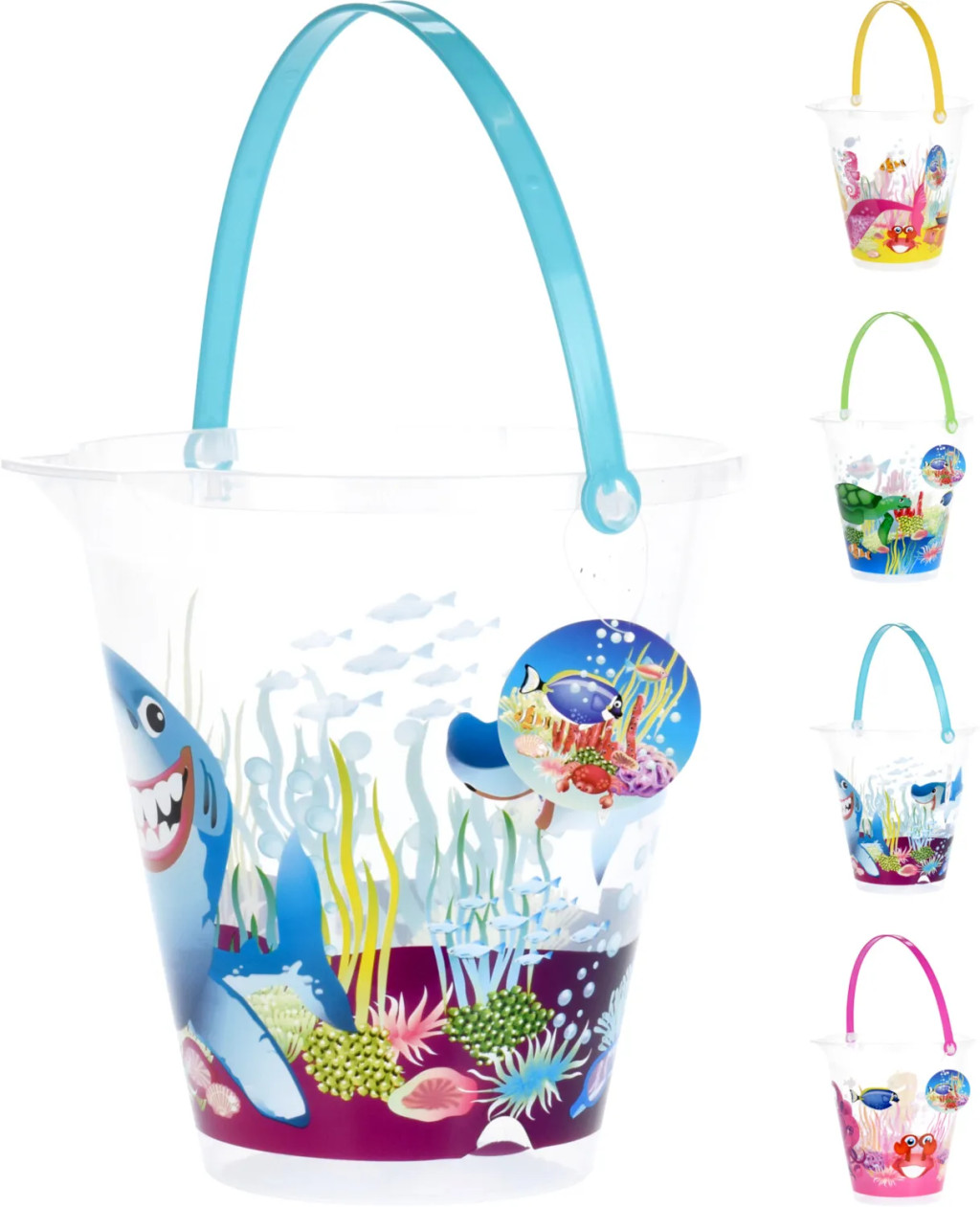 Ez a 24 x 23 cm-es homokozó vödör igazi alapdarab minden szabadtéri játékhoz, hiszen vidám tengeri mintájával azonnal meghozza a kedvet a homokozáshoz, strandoláshoz vagy akár pancsolós játékokhoz is. A nagyobb méret bőséges helyet kínál a homok, víz, kavics vagy apró játékok gyűjtéséhez, így a gyerekek szabadon engedhetik a fantáziájukat, miközben saját kis világukat építik fel.