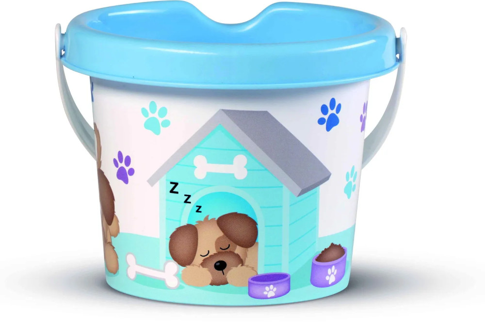 Legyen szó egy nyugodt napról a tengerparton vagy egy délutánról a hátsó kertben, ez a kutyás mintás vödör mindenhol megállja a helyét. Tökéletes tárolóeszköz a homokozóban használt kisebb játékoknak, formáknak és lapátoknak, így a gyerekek könnyedén magukkal vihetik kedvenc játékaikat bárhova.