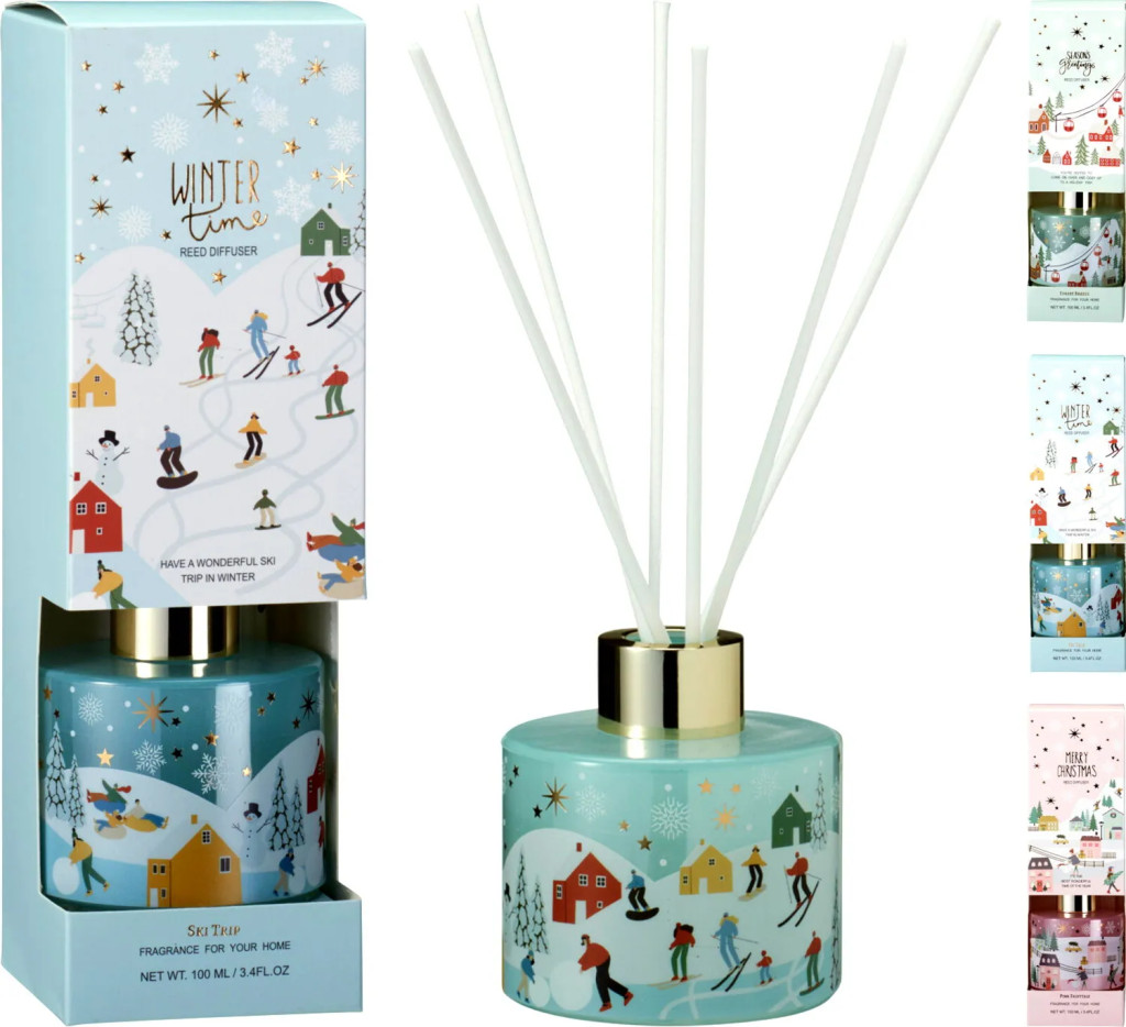 A téli hangulatot idéző dizájn vidám síelőkkel, hófedte házakkal és csillogó arany részletekkel teszi különlegessé a csomagolást, így nemcsak saját használatra, hanem ajándéknak is tökéletes választás. Engedd, hogy a tél illata belengje otthonodat és hozd el az ünnepek varázsát minden egyes nap ezzel a stílusos illatosítóval!