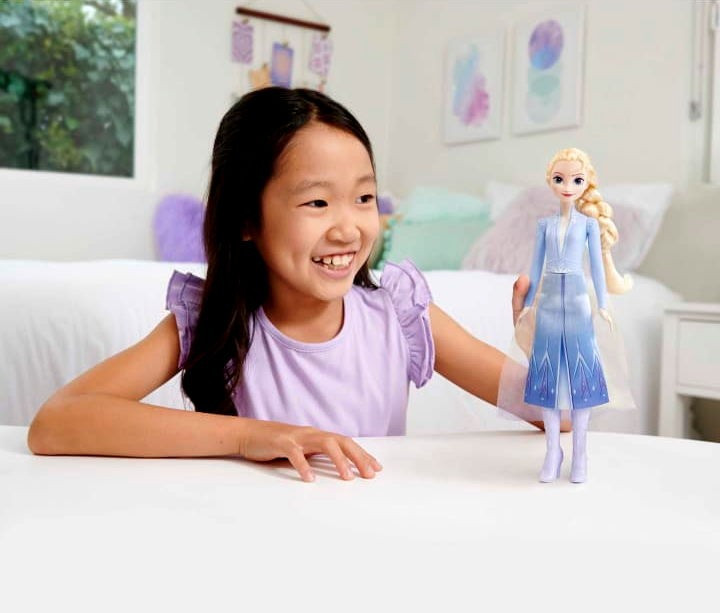 Elsa divatbaba a Disney Jégvarázs 2 által ihletett utazó öltözetet visel, és pózolható karokkal és lábakkal rendelkezik az aktív játékhoz és a jelenetek újrateremtéséhez. A csinos kék ruha autentikus részletekkel, levehető szoknyával és csizmával, valamint egy köpennyel rendelkezik a történethű meséléshez.