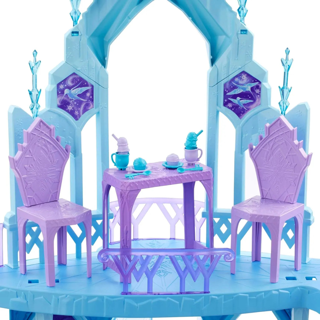 A szettben Olaf figura és rengeteg kiegészítő is helyet kapott, két szék, asztal, fagylaltok, csészék, kanalak, és sok más apró részlet, amelyekkel igazi királyi lakomát rendezhetnek a gyerekek. A palota mozgatható, forgatható és csúszdával is ellátott elemei még izgalmasabbá teszik a játékot, így a fantázia határtalanul szárnyalhat.