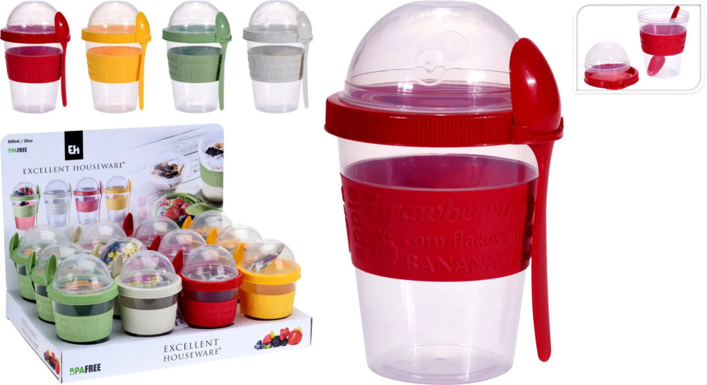 Vidám színek, okos kialakítás és maximális kényelem egy helyen – ez a joghurtos bögre nemcsak praktikus, de stílusos is! Ideális választás iskolába, munkába vagy akár piknikhez is.