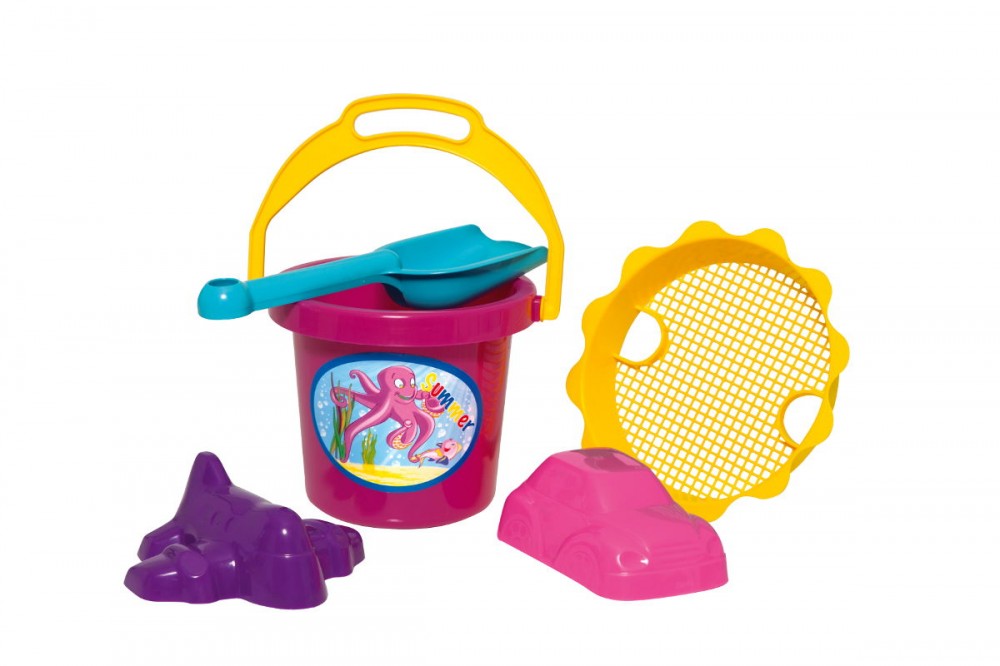 A szett tartalmaz a vödör mellett 1 db lapátot, 1 db homokozó szitát és 2 db homokozó formát is. Egy ilyen szettel a kézben több órányi piszkos móka vár a kicsikre!
