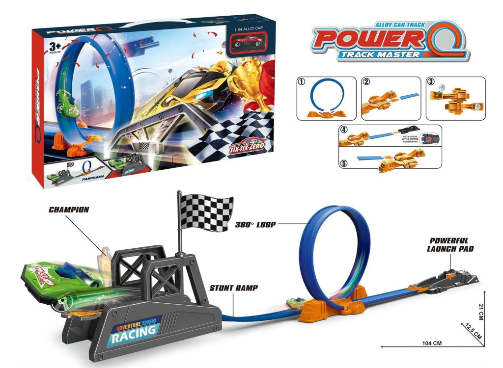 A gyerekek igazi bajnokként élhetik át a versenyzés élményét, miközben figyelemmel követik, hogyan száguld át az autó a hurkon és hogyan landol stabilan a pálya végén. A masszív kilövő mechanizmus könnyen kezelhető, így akár a kisebbek is gond nélkül újra és újra útnak indíthatják a járgányt. A pálya élénk színei és modern dizájnja önmagában is vonzza a tekintetet, és tökéletesen illik bármely gyerekszobába.