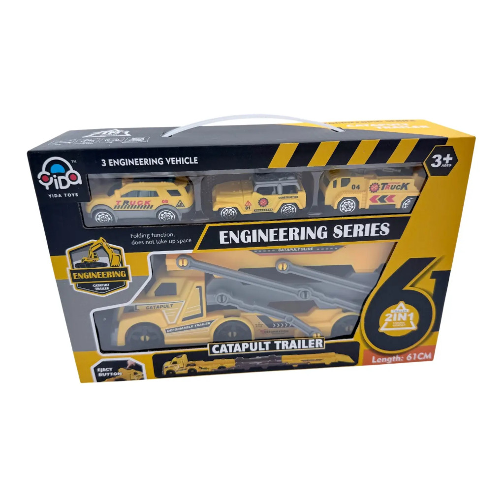 A nagy építkezések világa most végre a gyerekszobába is beköltözhet ezzel a szuper menő közutas katapult kamion játékszettel. A hatalmas, 61 cm hosszú kamion már önmagában is lenyűgöző látvány, de az igazi móka akkor kezdődik, amikor a kicsik felfedezik a különleges katapult funkciót. A kamion platója kibillenthető, a kis járművek pedig egy mozdulattal kilőhetők, hogy azonnal a munkaterületre siessenek.