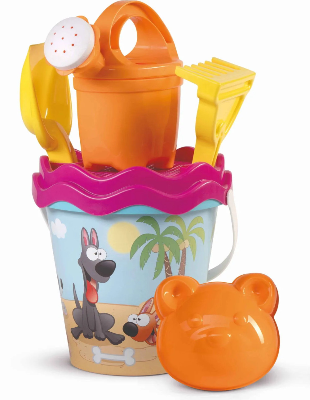Eme játékszett szívében egy kedves kutyás mintájú vödör trónol, amely magában hordozza a játék izgalmát és örömét. De itt nem áll meg az izgalom!