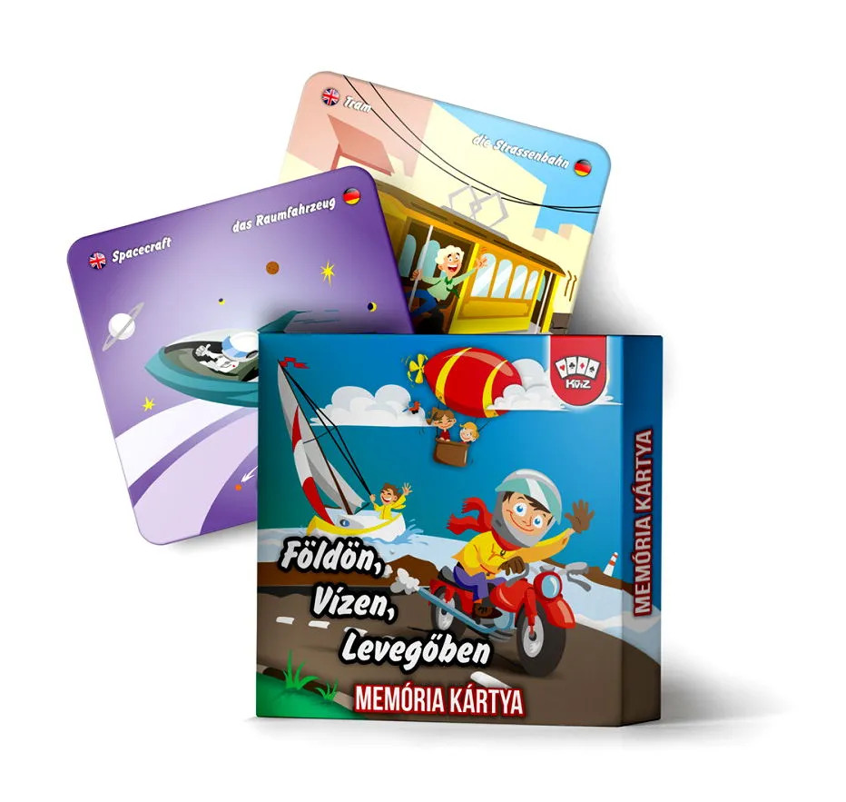 Klasszikus memóriakártya. A kártya elkalauzol a járművek világába. Legyen az földi, vízi vagy légi jármű, fontos hogy mar gyermekkorban megismerjük es megkülönböztessük ezeket a járműveket. Ezen kívül a memória készséget is fejleszti. A lapokon angol és német nyelven is megtalálható az adott jármű, így a nyelvtanulásban is óriási segítséget nyújt.