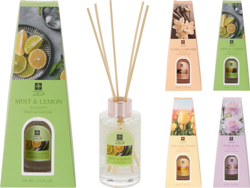 A pálcikás illatosító folyamatosan, egyenletesen párologtatja az illatot, így hosszabb ideig friss és kellemes légkört teremt. Használata rendkívül egyszerű: a pálcákat az illatfolyadékba helyezve az aroma fokozatosan szétárad a helyiségben, finom és tartós illatot hagyva maga után. A termék négy különböző illatváltozatban érhető el, így könnyedén kiválaszthatja az otthonához leginkább illő hangulatot. A friss citrusos, virágos vagy éppen lágyabb, elegáns illatok segítenek kellemes, nyugodt atmoszférát teremteni nappaliban, hálószobában, fürdőszobában vagy akár irodában is.