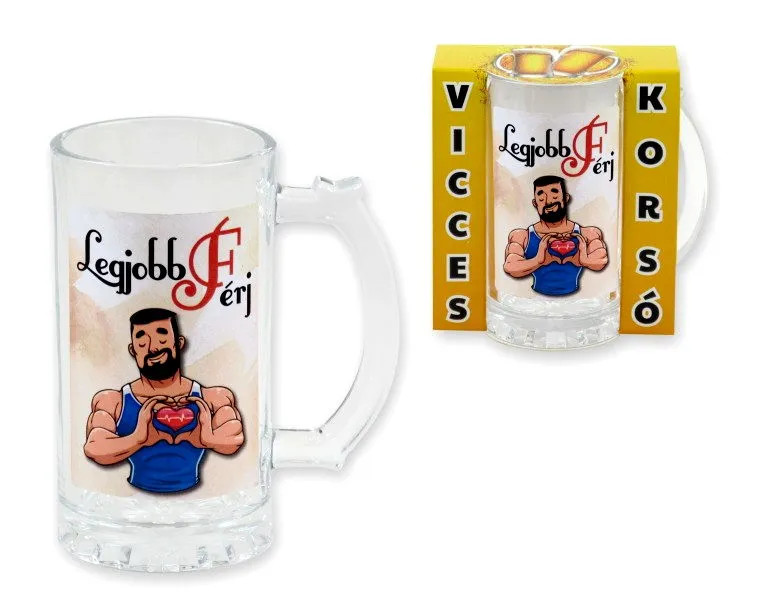 Ez a „Legjobb Férj” feliratos söröskorsó tökéletes ajándék minden olyan férjnek, aki megérdemli a dicséretet és egy jó hideg sört! Vidám, játékos dizájnja rögtön mosolyt csal az arcokra, miközben a felirat egyértelműen kifejezi, mennyire nagyra értékeled a párod humorát, szeretetét és kitartását.
