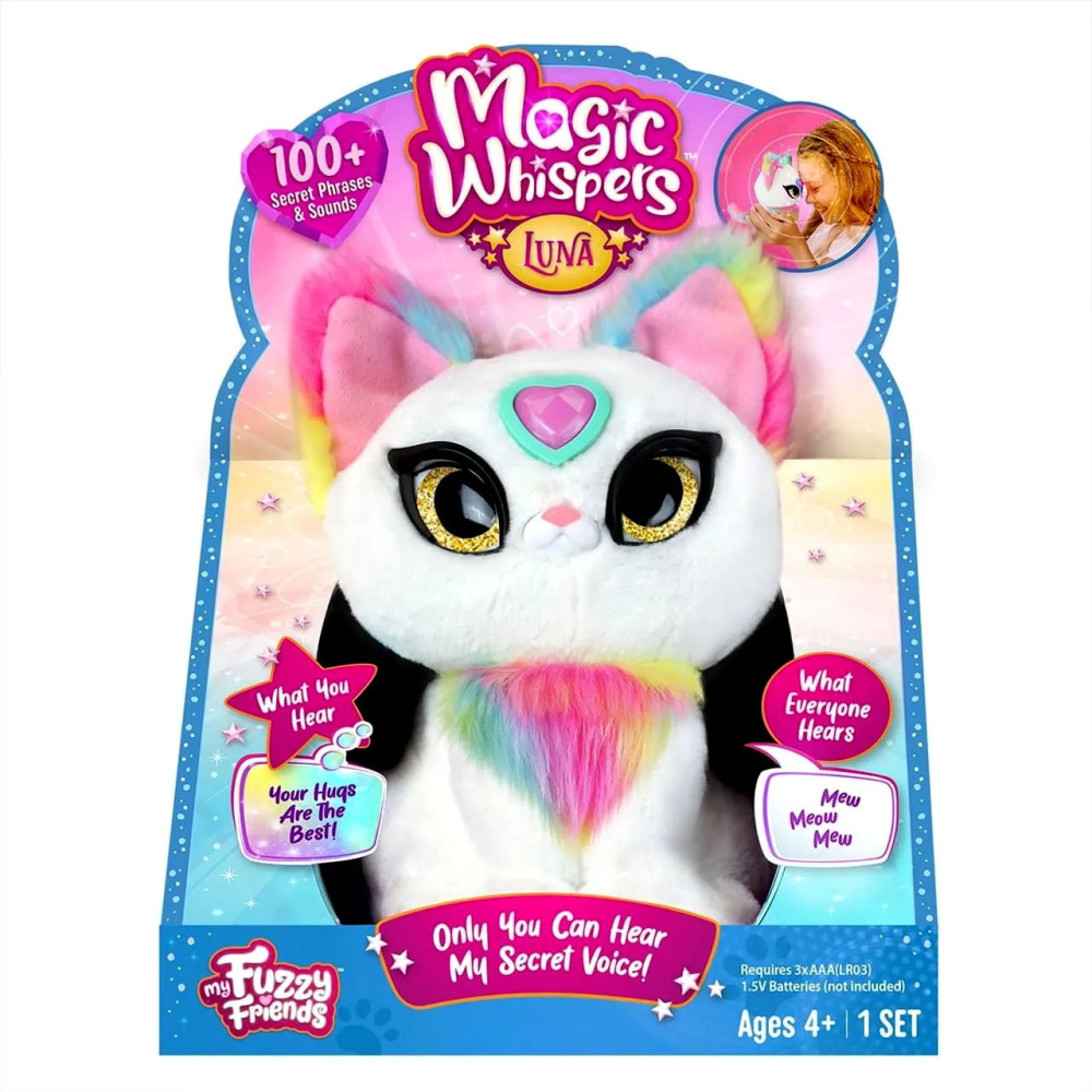 A magyarul beszélő interaktív My Fuzzy Friends Magic Whispers suttogó cicákat 4 éves kortól ajánljuk.