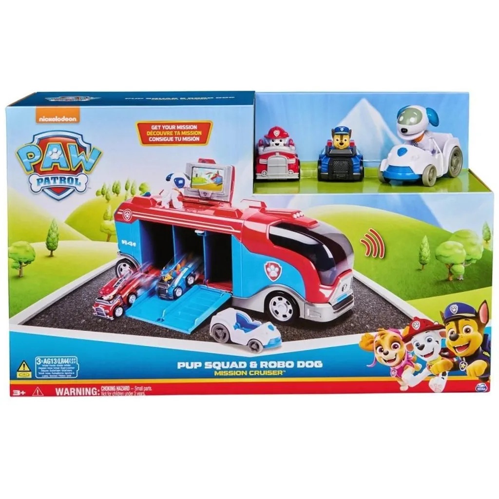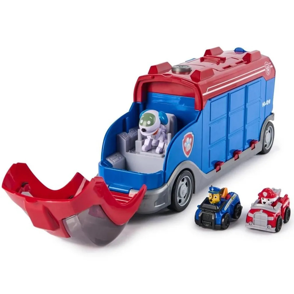 A csomagban egy nagy méretű, guruló csapatszállító jármű található, amelybe több kisautó is befér. A jármű kinyitható, belsejében pedig egy irányítópanel és lehajtható rámpák teszik még életszerűbbé a mentési jeleneteket. A készlet tartalmazza Chase és Marshall mini járműveit, valamint Robo Dog figuráját és futurisztikus autóját is. A gyerekek a jármű hátuljából indíthatják a kocsikat, így könnyedén újraalkothatják vagy saját ötleteik alapján kitalálhatják a következő akciót.